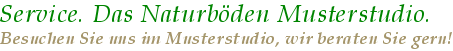 Damit sie sich ein Bild von den unterschiedlichsten Holz- und Verlegearten verschaffen können, empfehlen wir Ihnen einen Besuch in unserem Musterstudio. Im Studio werden sie von kompetentem Fachpersonal beraten. Eine sichere Grundlage für Ihre Entscheidung.