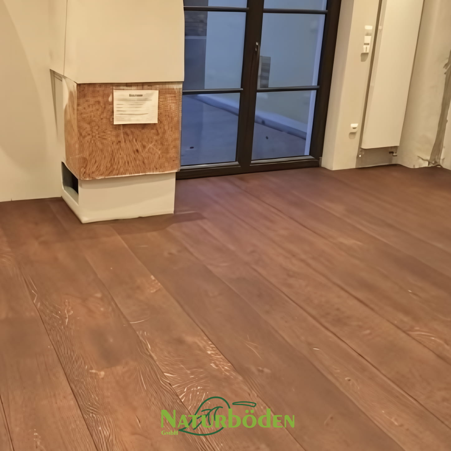 Vollflächiges Verkleben der 55 m² Tafeln auf den bestehenden Dielen (nach Schleifen/Grundieren) - mehrschichtiges Ölen beider Flächen für Schutz und edle Patina